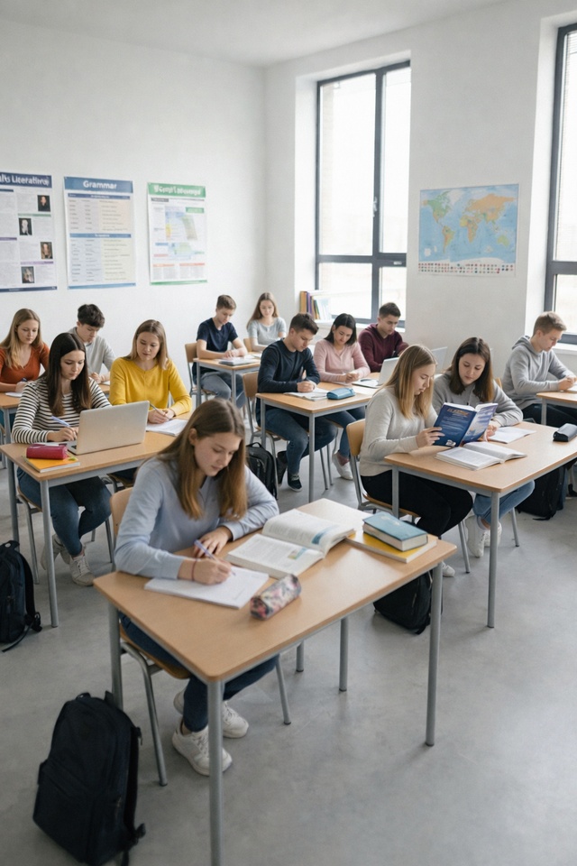 Cursurile pentru clasele 9–12 pun accent pe dezvoltarea gandirii critice, pe scriere de texte complexe si pe comunicare fluenta in contexte academice si profesionale.